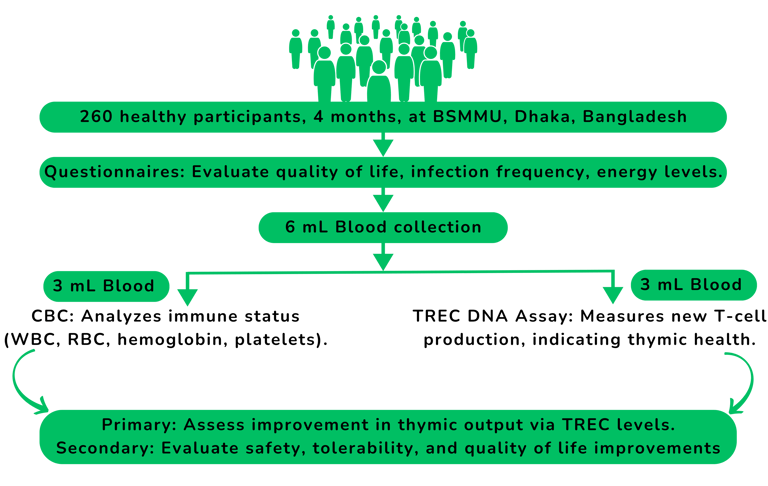 We are thrilled to announce that T-Booster has been accepted for a clinical trial at Bangabandhu Sheikh Mujib Medical University (BSMMU) in Bangladesh, involving 260 healthy participants. This rigorous trial highlights T-Booster’s potential and marks a key step toward scientific validation.